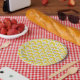 Karo aus diesem Design mit einem lustigen Retro-gelben Blumenmuster.