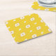 Dieser Untersetzer weist ein geometrisches, gelbes Retro-Muster mit Diamanten und Sternen auf.