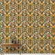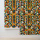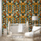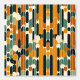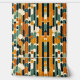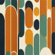 Ein lebendiges, in Retro-inspiriertes geometrisches Design mit fett orangen, grünen und schwarzen Formen. Die abstrakte Anordnung von abgerundeten Linien und Kreisen schafft eine dynamische, Vintage Ästhetik.