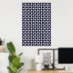 Ein geschmackvolles Retro-geometrisches Blatt/Blume-Muster in marineblau auf weißem Hintergrund.