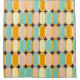 Retro geometric pattern with overlapping vertical ovals in shades of teal, peach, orange, and cream on a dark brown background. Vibrant and symmetrical.