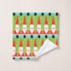 Egal, wie Sie es sehen, dieses Retro Geometric Santa Handtuch Set ist pur Urlaub whimsy! Es sind Reihen von Santas. Nein, es sind Reihen von Weihnachtsbäumen. Nein, es sind Reihen von Santas, die wie Weihnachtsbäume geformt sind, und Reihen von fröhlichen grünen Weihnachtsbäumen mit weißen Polka Punkten. Es ist kitschig. Es ist farbenfroh. Und wenn Sie sich nicht in den Urlaubssgeist stürzen, dann ist etwas mit Ihnen definitiv nicht in Ordnung! Jeder identische dreieckige Weihnachtsmann trägt seinen Anzug und Hut. Jeder Hut hat oben eine gelbe Sternexplosion, die als Taschentuch für den Weihnachtsmann und als Vintager Stern für einen Weihnachtsbaum dient. Das Alte St. Nick hat einen gut gepflegten weißen Bart, eine glänzend rote Nase und fröhliche, abgerundete Augen. Die schwarzen Stiefel jedes Weihnachtsmannes dienen auch als Kofferraum zu einem Weihnachtsbaum. Wo sich die Füße und Baumstämme des Weihnachtsmannes treffen, gibt es einen Streifen inspirierten Wassers aus der Mitte des Jahrhunderts. Der Kauf dieses Produktes ist garantiert, um Sie von der unanständigen Liste behalten, ganz gleich, was Sie getan haben!