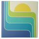 Retro Geometric Sun Design in Blau Grün & Gelb.