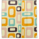 Retro-geometrisches Muster mit überlappenden Rechtecken und Ovalen in Orange, Türkis, Pink und Braun auf hellbeigem Hintergrund, das eine spielerische, lebendige Stimmung erzeugt.