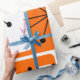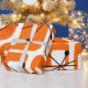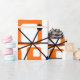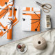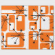 Dieses Retropapier ist mit modernen orangefarbenen Quadraten und schwarzen Sternexplosionen aus der Mitte des Jahrhunderts bedeckt.