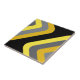 Moderne abstrakte Kunst des Mittelalters, einfache geometrische Linien, die zwei Hälften großer Diamanten bilden. Abstrakte kitschige Pop-Kunst für mittelgroße Mod-Liebhaber. Schwarz, Gelb und Grau