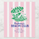 Retro Girl Beach Club Pink Stripes Birthday Party Weinetikett