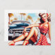 Retro Girl Classic Button Up Postkarte