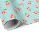 Retro-Girly-Türkis-Kirschmuster Monogramm Geschenkpapier