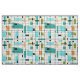 Dieses Retro Gitter-und Sternexplosion-Gewebe ist, wo Vintage Art modernen Tag sich trifft. Es kennzeichnet einen cremefarbenen Hintergrund mit kitschy, weg weg den Konditionsquadraten und von den Rechtecken in aquamarinem, im Türkis, in diesem hellblauen, Orange und Avocadogrün. Die wunderlichen Blöcke der Farbe werden werden gearbeitet in einige der Gitterschnitte bedeckt. Es gibt auch schwarze Rechtecke mit den schwarzen vertikalen und horizontalen Linien, die ein Gitterfeld bilden. Schwarze Sternexplosionentwürfe und -quadrate sporadisch gesetzt während dieser modernen Tapisserie der Mitte des Jahrhunderts der Farbe. Ergreifen Sie Ihr gehen-gehen Stiefel und Glockeunterseiten und genießen diesen Rückschritt zu den sechziger Jahren.