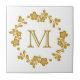Diese wunderschöne Kachel hat eine Blume im Retrostil und einen Rebkreisrand, mit dem Monogramm in der Mitte, auch in Gold. Der Rahmen mit Blumenrahmen und das Monogramm werden auf einem weißen Hintergrund platziert. Sehr elegant!