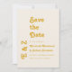 Diese moderne Retro-Hochzeit Save the Date-Karte bietet goldene gelbe Texte auf einem cremefarbenen Hintergrund. Fügen Sie die Namen und Monogramm-Initialen der Braut und Bräutigam in stilvollem Retro-Display Typografie und die Details in sans Serif Schriftart. Die Rückseite ist ein passender Schatten aus massivem Goldene Stab.