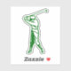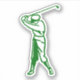 Golf Sport Thema Ausschnitt Form Aufkleber mit einem Retro-Golfer schwingen eine Golf Club Aktion. Entworfen für die Golfindustrie, um Rechnungen zu dekorieren, Kundenkorrespondenz, oder als Golf-Thema Gastgeschenk.