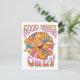 Ein Retro-Design, das "Good Vibes Only" besagt und in den 60er Jahren Pilze und Blume aussieht