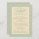 Beginnen Sie Ihre stilvollen Cocktailpartys mit unserer modernen Getränkebrenndusche. Unsere Brautdusche lädt Sie ein zu einem einzigartigen Retro-Cocktail Party Schild Set auf einem zeitgenössischen grünen Hintergrund. Dreh die Einladung zu einem trendigen und stilvollen türkisfarbenen & beige Streifen hinten.