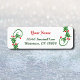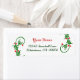 Editierbare Rücksendeadressen-Aufkleber mit roten Buchstaben für Ihren Namen und dunkelgrüne Buchstaben, die von den Garnelen der Heiligen gerahmt sind
