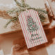 Wenn Sie ein einzigartiges und schön leicht bearbeitbares Weihnachtsgeschenk-Tag suchen. Dieses hier ist perfekt für dich. Wie Sie sehen, das Design verfügt über eine einzigartige grüne Hand gemacht und gezeichnet Weihnachtsbaum aus rosa und rosa langen Schleifen. Mit roter und rosa handgeschriebener Typografie fröhlicher Weihnachten und Familiennamen.