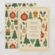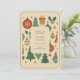 Stilvolle Urlaubswünsche mit dieser modernen Retrokarte in Grün und Rot Mitte des Jahrhunderts. Mit hübschen und eleganten geometrischen Formen, funky abstrakter Sternexplosion, Vintag inspiriert Typografie, Kiefern, Kiefern und Beeren, Schneeflocken und einem charmanten Zierakzent verleiht dieses Design Ihren Wintergruben einen zeitlosen Stil.
