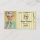 A playful, retro-inspired design crafted for stylists who want their branding to feel fun, current, and memorable. The soft yellow stripes paired with hand-drawn bow green doodles give it a lighthearted charm, while the bold photo section highlights your work and personality instantly. The back layout includes space for a scannable QR code along with your socials, making it easy for clients to connect or book in seconds. Perfect for salons, freelancers, and beauty professionals who love a cute, offbeat aesthetic with a polished feel.