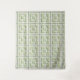 Hinzu kommen die modernen Palmfefferringe aus der Mitte des Jahrhunderts, die mit diesem Retro-grünen Trellis-Muster verziert sind. Es wurde von Vintagen Betonbrise-Blöcken inspiriert. Die dekonstruierte Architektur der 50er Jahre verleiht dem Alltag ein schnelles Designgefühl.