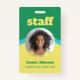 Einseitige vertikale ID-Abzeichen für Ihre Mitarbeiter in einem Retro-Design in Grün, Gelb und Blau. Personalisieren Sie sich mit dem Foto, dem Namen und dem Titel Ihres Mitarbeiters in einem kühnen, auffälligen, gelben Schriftart. Das Abzeichen ist einfach und leicht zu lesen, ohne Logo bedruckt, fett und fröhlich.