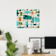 Dieses Retro Grid and Sternexplosionen Poster ist ein Ort, wo Vintager Stil und Moderne aufeinander treffen. Es ist cremefarben mit kitschiger, abseits von Kastenplätzen und Rechtecken in aquamarin, türkis, Dieses hellblau, orange und Avocado grün. Die skurrilen Farbblöcke werden überlagert und in einige Rasterschnittstellen bearbeitet. Es gibt auch schwarze Rechtecke mit schwarzen vertikalen und horizontalen Linien, die ein Rastermuster bilden. Schwarze Sternexplosion Designs und Plätze sporadisch platziert in diesem Mitte des Jahrhunderts moderne Tapisserie von Farben. Nehmen Sie sich Ihre Go-Go-Stiefel und Glockenböden und genießen Sie diese Rückkehr in die 60er Jahre.