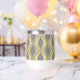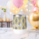 Ein Mod gemustertes Gold ohne Stemme mit einem Platz für ein einfaches Monogramm. Das Taupe-, Grau- und Golddesign weist ein grobkörniges Bio Wellenmuster auf. Ein minimaler Look in dezenten Farben mit einem einfachen Serif-Schriftart für ein Monogramm.