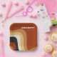 Diese grobkörnige Retro-Hochzeitspapiertafel weist gewellte Linien in Bräune, Braun und Orange auf, die an den 70er- und Hippie-Lebensstil erinnern. Feines Vintages Dekor mit funky weißem Drehbuch des Paares neben den abstrakten, kurvigen Linien. Groove mit diesem lustigen Erdtondesign.