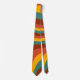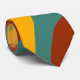 Eine Krawatte mit einem leuchtenden und farbenfrohen Retro-Wellenmuster aus dem rauschigen 70er in gebrannten Rot-, aquamarin-, Gelb- und Orangetönen.