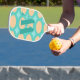 Retro Groovy Aqua & Peach Monogram Pickleball Schläger