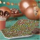 Feiern Sie Ihren Geburtstag mit diesen grobbraunen Tellern mit Retro-Rosa, Aqua und grünen Blume.