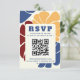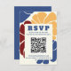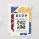 Retro Groovy Boho Chic Floral Wedding QR CODE RSVP Karte