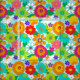 Feines, gemustertes Retro-Gewebe mit bunten, grobkörnigen Hippie-Blume