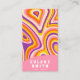 Eine Vintage Retro Psychedelisch farbenfrohe rosa flüssige Visitenkarte. Die abstrakten Formen zeichnen sich durch handgefertigte, groove Muster aus. In elegantem, schicken Orange, Rosa, Beige und lila. Modernes und dennoch nostalgisches Ambiente aus den 70er Jahren, lebhafte warme Farben und zauberhafte Schriftart. Mit individualisierbarem Namen und Beruf und QR-Code.