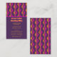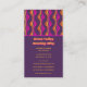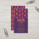 Ob Sie Ihre Bowlingbahn, Ihre Diskothek oder Ihr Vintages Themengeschäft mit diesen groovy lila Visitenkarten betreiben, tun Sie das stilvoll. Ihre Details erscheinen in fett-gelber Schrift vor einem lila Hintergrund, der durch ein lustiges und funky Retro-Muster in lila, heiß magentafarbenen Rosa, Orange und Gelb betont wird.