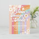 Feiern Sie den großen Tag Ihres Kleinen mit dieser retro-inspirierten Einladung zum 3. Geburtstag! Mit einem lebendigen Regenbogenhintergrund, spielerischen Gänseblümchen, Friedenszeichen, Schmetterlingen und skurrilen Schriftarten erfasst dieses Design die lebensfrohe Atmosphäre der 1970er Jahre. Perfekt für eine groovy Geburtstagsfeier, gibt diese anpassbare Einladung den Ton für Frieden, Liebe und Feier an. Personalisieren Sie sie mit dem Namen Ihres Kindes, den Party-Details und den RSVP-Informationen, um ein Unikat-Andenken zu schaffen, das Ihre Gäste lieben werden.