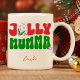 Retro Groovy Typografie personalisierbare Skriptkaffeemaschine Tasse für Mütter. Das Design zeigt den Text "Jolly Mumma" in rot und grün Retro Groovy Typografie mit niedlichen bunten boho-themed Blumenelementen. Der Name kann leicht angepasst werden. Macht für die beste personalisierte Geschenkidee für Ihre Schwiegermutter oder Ihre Schwiegermutter. Wir haben mehr als 45 Weihnachtslieder in Retro-Design, Aquarell und lustiger Typografie-basiert in unserer Sammlung, dass Sie definitiv Liebe. Frohe Weihnachten!
