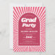Klasse von 2025 Retro Groovy Magenta und rosa Sonnenstrahlen 70er inspiriert Graduation Party Einladung. Machen Sie sich auf der Graduation Party der Class of 2025 fit! Diese Einladung dreht sich darum, die Retro-Vibes des 70ers mit seinem pulsierenden Magenta und seinem rosa Sonnenstrahldesign zu begrüßen. Die Vorderseite der Einladung ist mit einem Bogen in einer lebhaften Kombination aus Magenta und Weiß ausgestattet, mit einem trendigen Sonnenstrahl-Muster in Rosa und einer Touch Nostalgie. Um das wirbelnde Aussehen zu vervollständigen, wird der Satz 'Grad Party' in einem coolen Retro-Schriftart geschrieben. Dreh die Einladung, und Sie finden eine Vintage Ästhetik, die zum Leben erweckt wird, mit einem Foto des Absolventen in der gleichen Bogenform. Es ist eine perfekte Mischung aus alt-schulischem Charme und modernem Feiern!
