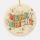Retro Groovy Merry & Bright Christmas Keramik Ornament
