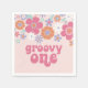 Groovy One! Retro inspirierte 1. Geburtstag mit Schriftart und Farbtönen im Stil der 70er Jahre, floral in kräftig rosa und lila Farben.