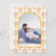 Diese Hochzeitseinladung zeichne Inspiration aus der lebhaften und nostalgischen Ästhetik des 70ers, mit Retro-Groovy Rosa-Pfirsich und Senfgelben Farbtönen. Mit seiner Retro-Farbpalette und dem allgemeinen Stil wird das Wesen der 70er Jahre aufgefangen. Auf der Vorderseite befindet sich ein Bogen-Design, der von Ihrem personalisierten Text begleitet wird, während auf der Rückseite ein Retro-Blume-Muster und ein Foto des Ehepaares gezeigt werden.