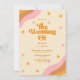 Retro Groovy Pink and Gold Wave Wedding Einladung