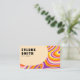 Eine Vintage Retro Psychedelic farbige flüssige Visitenkarte. Das ist ein handgefertigtes, groovierendes Muster mit abstrakten, wellenförmigen Formen. In elegantem lila und pink, gelb und orange. Moderne und dennoch nostalgische 70er Jahre mit Farben und frommen Schriftart. Mit individualisierbarem Namen und Beruf und QR-Code.