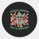 Retro Groovy Teacher Christmas Rockin' Around The Runder Aufkleber