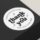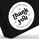 Modernes Business Dankeschön an Aufkleber mit Retro-Groovy Stil Schriftart in Schwarz-Weiß. Sie können Ihren Firmennamen hinzufügen und Ihre eigenen personalisierten Paket-Labels erstellen. Fügen Sie Ihre Bestellungen mit diesem nostalgischen Stil die letzte Touch hinzu, dank Ihres Aufklebers.
