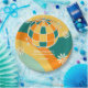 Retro-Geburtstagsdesign mit Disco-Ball mit niedlichen, tagsüber anmutenden Blume auf einem rauschigen Wellenhintergrund. Perfektes Party für einen Geburtstag im Retro-Disco-Stil.