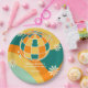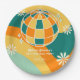 Retro Groovy Wave Disco Ball Daisy Orange Geburtst Pappteller
