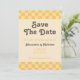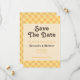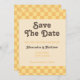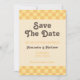 Sie suchen eine einzigartige und großartige Möglichkeit Ihre kommende Hochzeit zu verkünden? Schauen Sie nur auf unsere "Retro Groovy" Save the Date Karte! Mit einem kühnen und lebhaften, gelben und orangefarbenen Schachbrettmuster wird diese Karte sicher das Auge Ihrer Gäste erfassen. Das Retro-Design fügt Ihrer Ankündigung eine Touch Nostalgie hinzu, während der anpassbare Text Ihnen erlaubt, es zu Ihrem eigenen zu machen. Diese Save the Date Karte ist der ideale Set für Ihren besonderen Tag. Bestellen Sie noch heute Ihre Bestellung und lass, dass die Groovy Vibes beginnen!