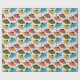 Retro-inspired pattern of bright flowers in blue, green, yellow, red, and orange with vintage mid-century modern halftone and star details.