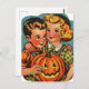 Retro Halloween Boy and Girl mit Jack-o-Lantern Postkarte